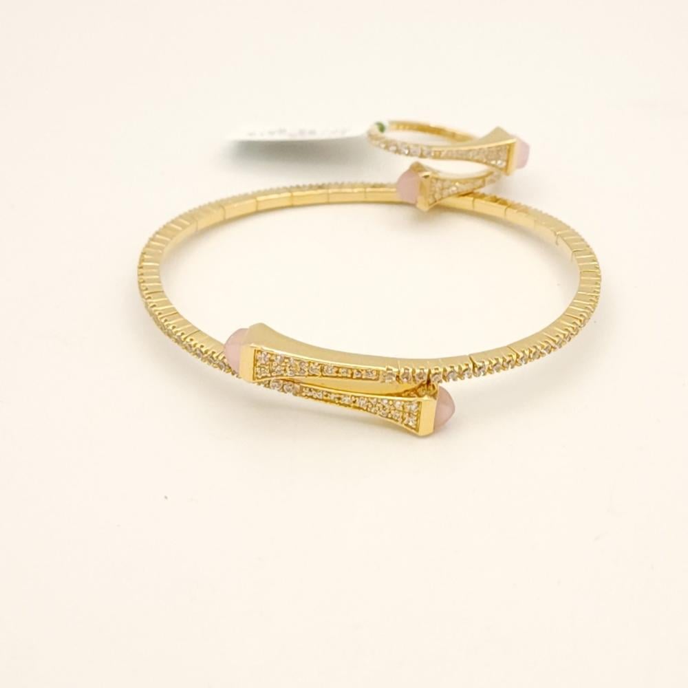 تأتي الاسورة بتصميم أنيق مع تفاصيل دقيقة، حيث تم تصنيعها من ذهب عيار 18 عالي الجودة. تتميز بلمسة نهائية ناعمة تعكس الضوء بشكل رائع، مما يضفي لمسة من الفخامة على إطلالتك. الشكل المنحني للاسورة يضمن راحتها أثناء الارتداء، بينما تضيف الزخارف اللامعة لمسة من الجاذبية.