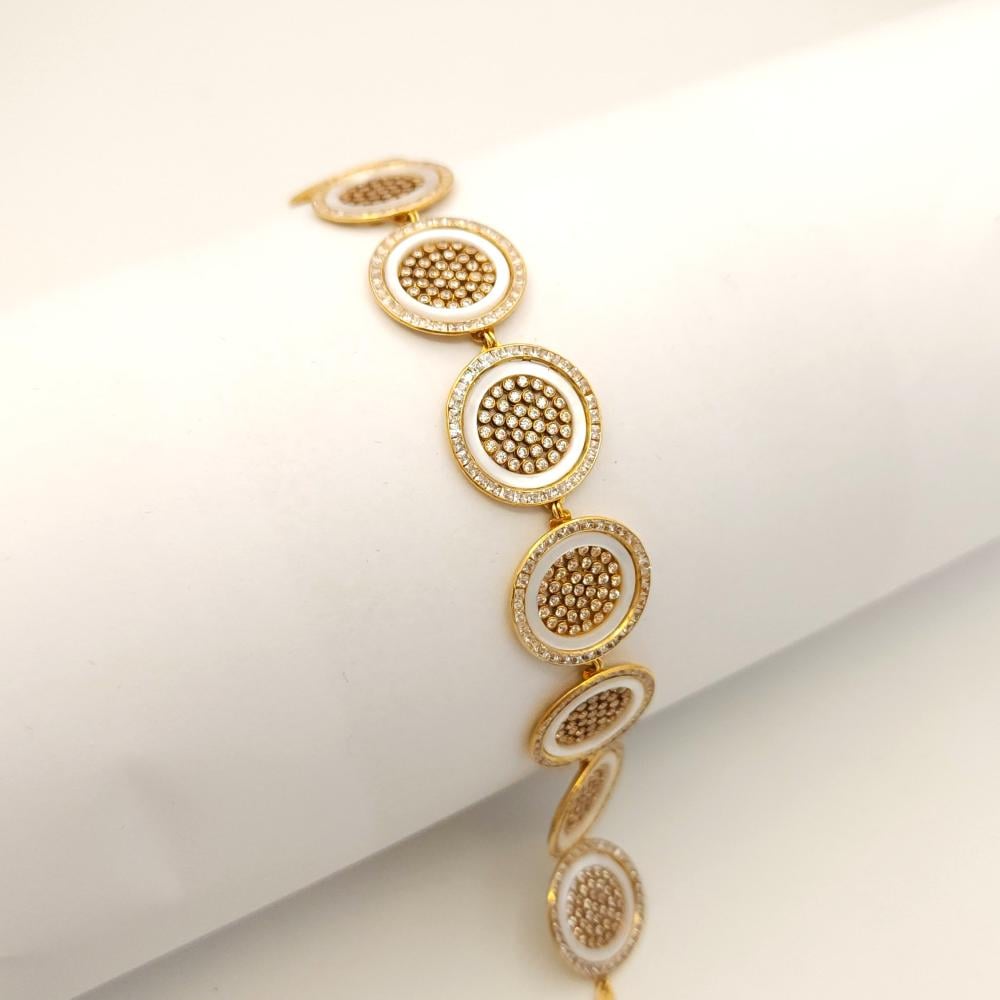 استمتع بأناقة لا مثيل لها مع انسيال ذهب عيار 18 الوزن 11.11 جرام. يتميز هذا الانسيال بتصميم دائري أنيق يجمع بين الفخامة والراحة، مما يجعله الخيار المثالي لكل من يسعى لإضافة لمسة من الرقي إلى إطلالته. يتكون الانسيال من حلقات دائرية متصلة، مما يضفي عليه مظهرًا جذابًا ومتميزًا.