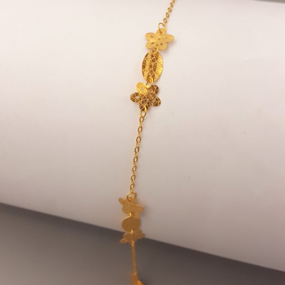 اكتشفي سحر انسيال ذهب عيار 21 بوزن 1.59 جرام، الذي يجسد الأناقة والتميز في تصميمه الرائع. يتميز هذا الانسيال بتصميم زهور فريد، مما يجعله خيارًا مثاليًا لكل من تبحث عن لمسة جمالية تضيف إلى إطلالتها.