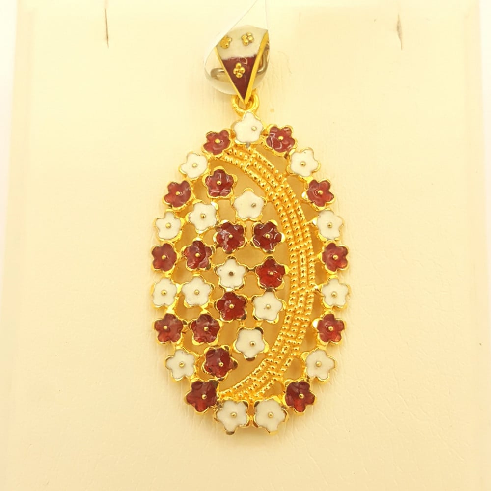 تأتي التعليقة بلون ذهبي لامع، مما يضفي عليها لمسة من الفخامة. الأزهار الحمراء والبيضاء المزينة بها تضفي لمسة من الحيوية والبهجة، حيث تتناغم الألوان بشكل رائع لتعكس جمال الطبيعة. التصميم البيضاوي للتعليقة يضيف إليها طابعًا أنثويًا، بينما يضمن الشكل الأنيق سهولة ارتدائها مع مختلف الإطلالات.
