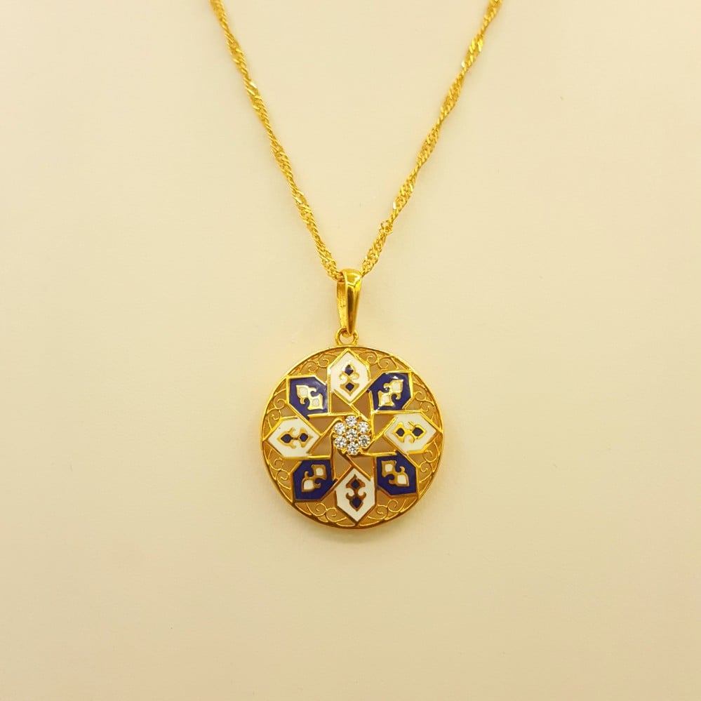 تعتبر هذه التعليقة الذهبية الملونة عيار 21 الحل المثالي لمن يبحث عن تميز في إطلالته. فهي ليست مجرد قطعة مجوهرات، بل تعبير عن أسلوب حياة يعكس الأناقة والثقة.