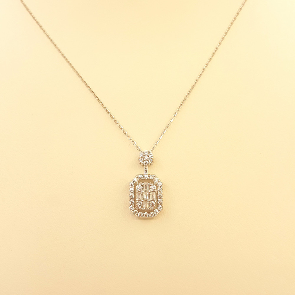 لا تفوتي فرصة الحصول على هذه القطعة الفريدة، التي تمزج بين الجمال والعملية. اجعلي تعليقة ذهب أبيض عيار 18 جزءًا من مجموعتك اليوم واستمتعي بإطلالة لا مثيل لها. تسوقي الآن وكوني محط الأنظار!