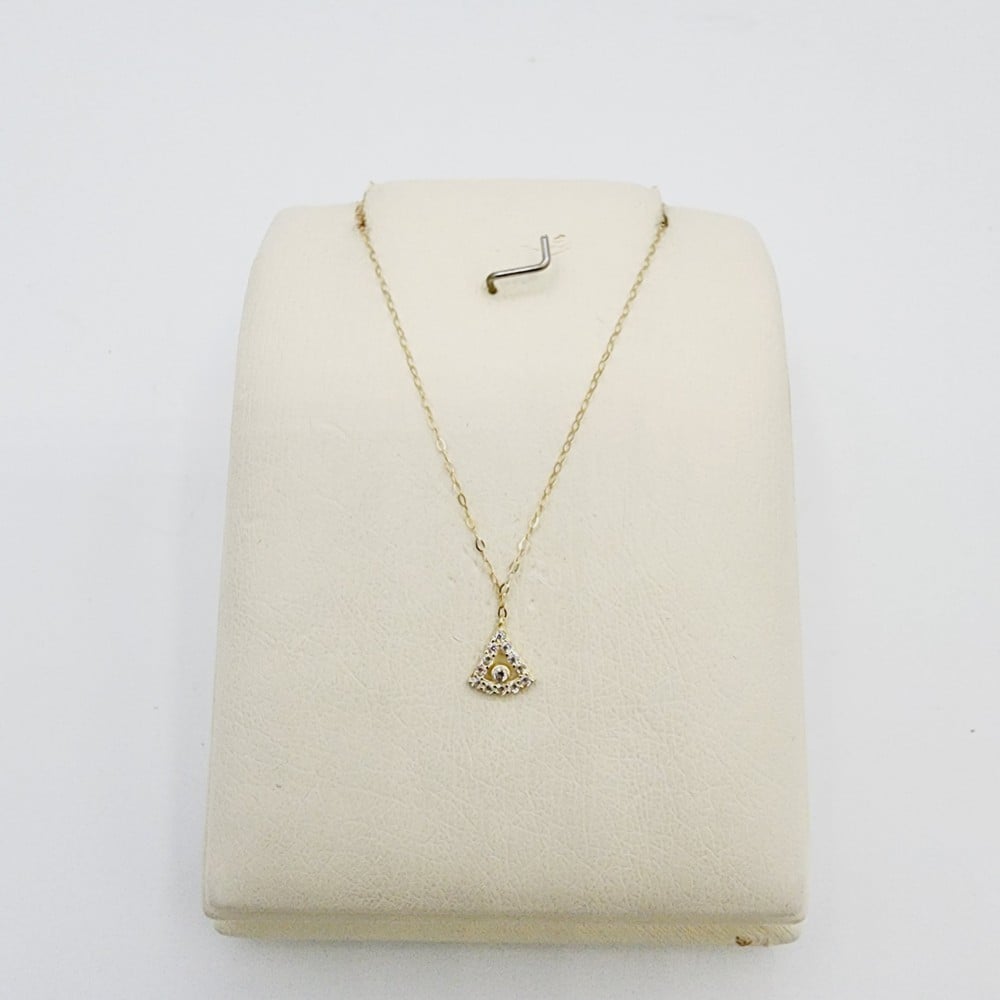 تأتي التعليقة بلون ذهبي دافئ، يضفي لمسة من الأناقة على أي إطلالة. تم تصنيعها من الذهب عيار 18، مما يضمن لك جودة عالية ومتانة تدوم طويلاً. شكلها الدقيق والناعم يجعلها مريحة عند الارتداء، بينما يبرز تصميمها الأنيق جمال العنق ويضفي إشراقة على البشرة.