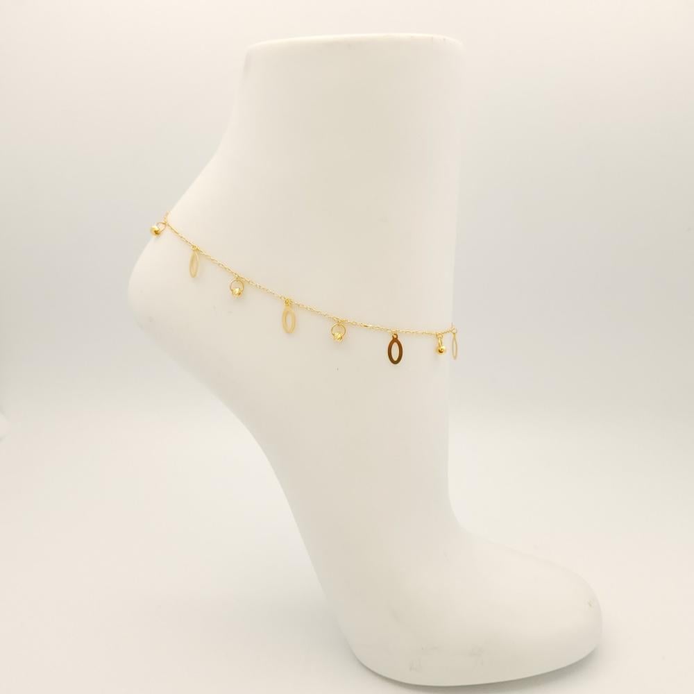 - تصميم فريد: يتميز الخلخال بتصميمه الأنيق الذي يتضمن حلقات متدلية، مما يضفي لمسة من الحركة والجاذبية.