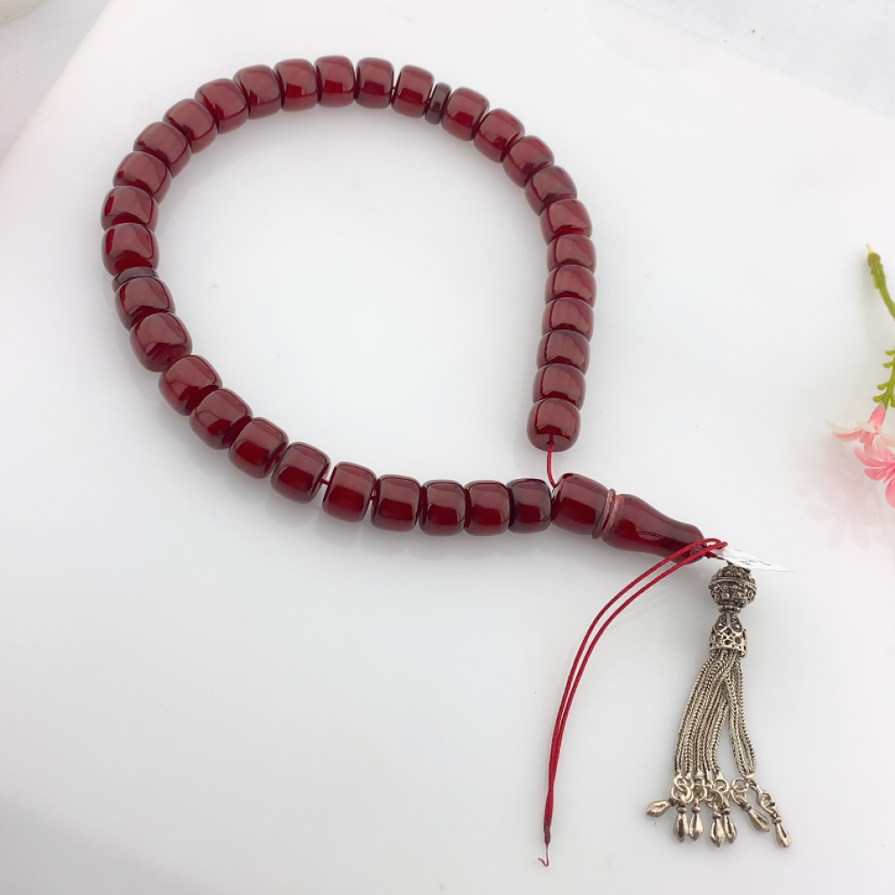 - تصميم أنيق: تتميز السبحة بشكل دائري سلس مع حبات مصقولة بعناية، مما يضمن إحساسًا ناعمًا عند الاستخدام.