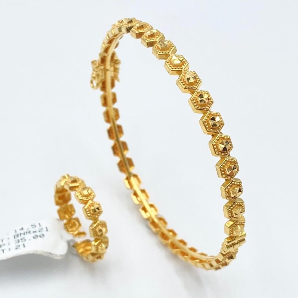 من الذهب الأصفر عيار 21k قيراط تتميز بجاذبية ملفتة. مثالية للارتداء اليومي. يمكنك تنسيقها مع المجوهرات من الذهب تملكينها.