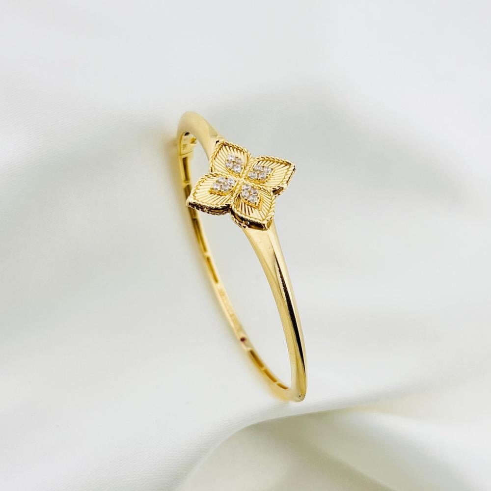 استمتع بأناقة لا تضاهى مع سوار ذهب تصميم عالمي عيار 18 وزن 11.73 جرام. يتميز هذا السوار بتصميم زهري أنيق يجعله إضافة مثالية لمجموعتك من المجوهرات.