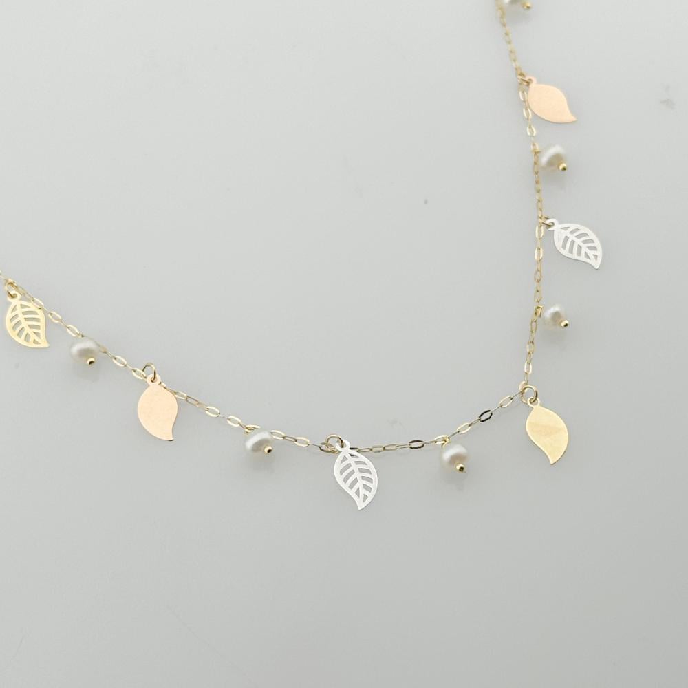 • تصميم مميز: يتكون من سلسال رقيق مزين بأوراق ذهبية وبيضاء، مما يجعله خياراً مثالياً لإبراز جمالك.