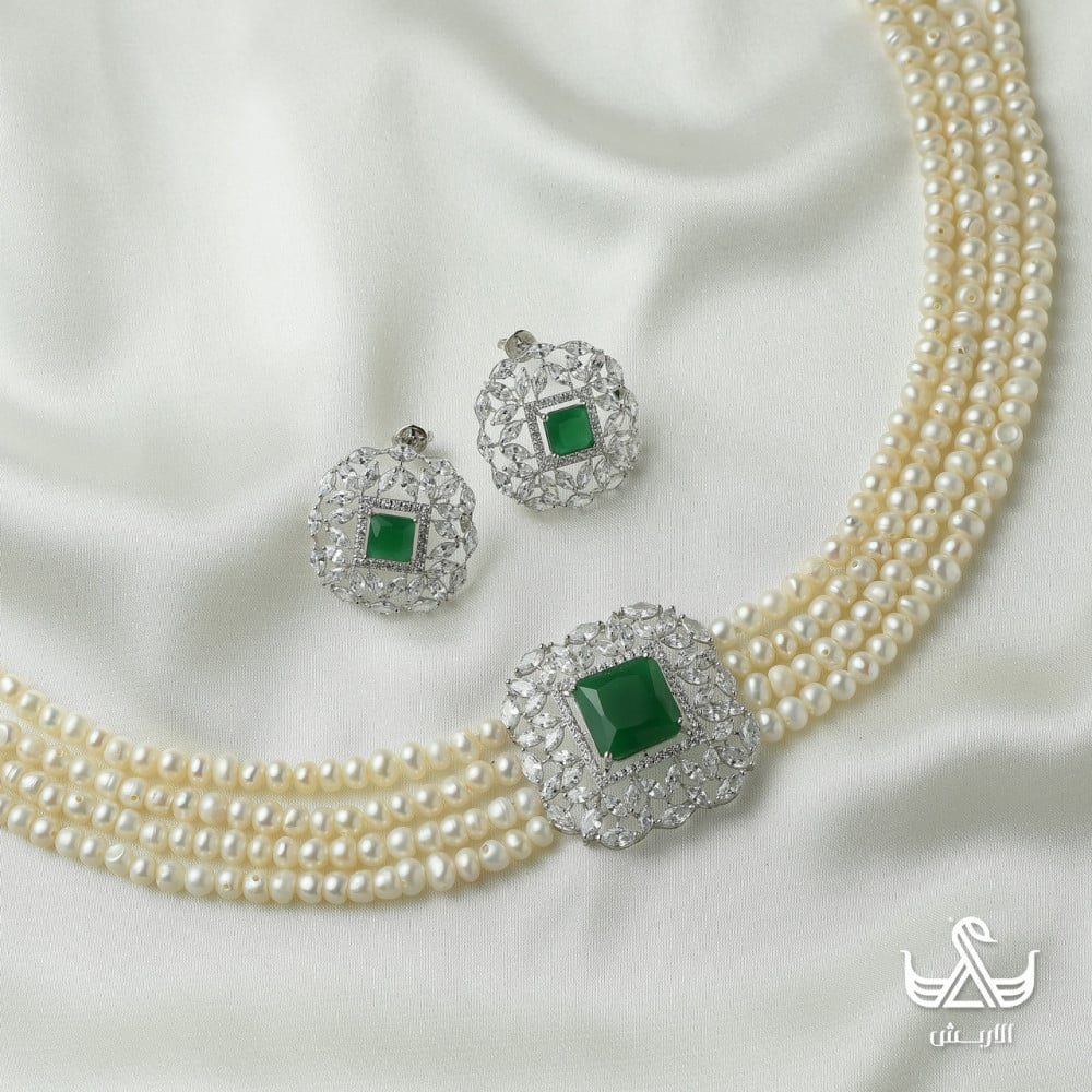هذا الشوكر مصنوع من الذهب الأصفر عيار 18k، مما يضمن لك جودة عالية ومظهرًا لامعًا. يتميز بتفاصيل دقيقة وملفتة، حيث تم استخدام حبات اللؤلؤ البيضاء التي تضيف لمسة من الفخامة. كما أن تصميمه ذو الحواف الناعمة يضمن لك راحة في الارتداء طوال اليوم.