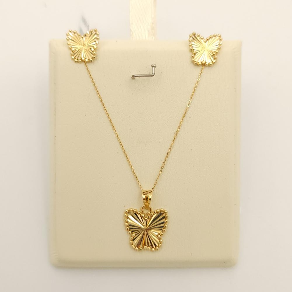 - تفاصيل دقيقة: يتميز الطقم بنقوش دقيقة على شكل الفراشة، مما يجعله قطعة فريدة من نوعها.