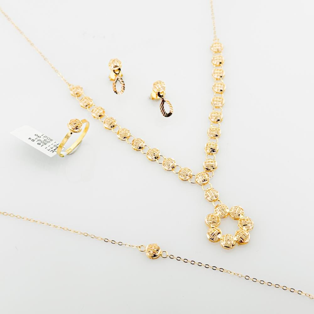 لا تفوتي فرصة اقتناء طقم ذهب عيار 21 الذي يجمع بين الفخامة والأناقة. كوني دائمًا في مقدمة الموضة مع هذا الطقم الرائع، وامنحي نفسك أو من تحبين هدية لا تُنسى. اطلب الآن وكوني الأجمل في كل مناسبة!