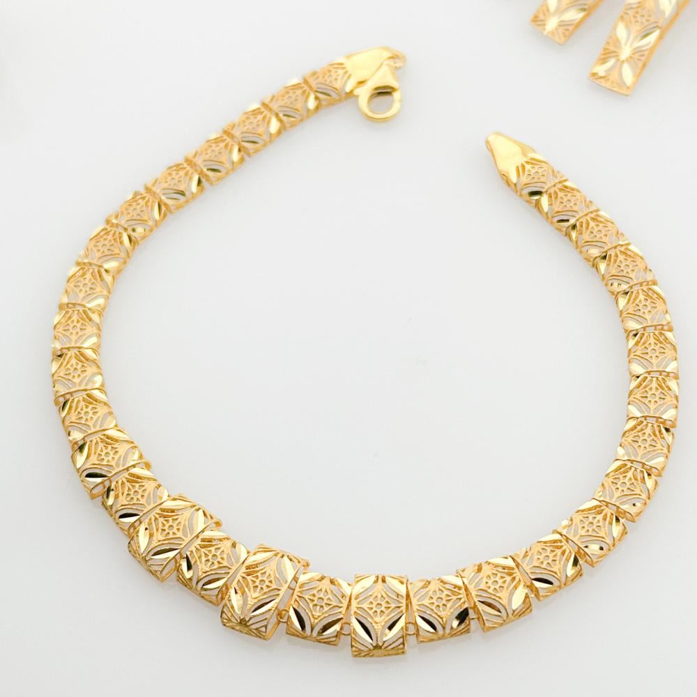 طقم ذهب عيار 21 هو الخيار المثالي لكل من تبحث عن الأناقة والتميز. يتميز هذا الطقم الرائع بوزن 24.74 جرام، مما يجعله خفيفًا ومناسبًا للاستخدام اليومي والمناسبات الخاصة على حد سواء.
