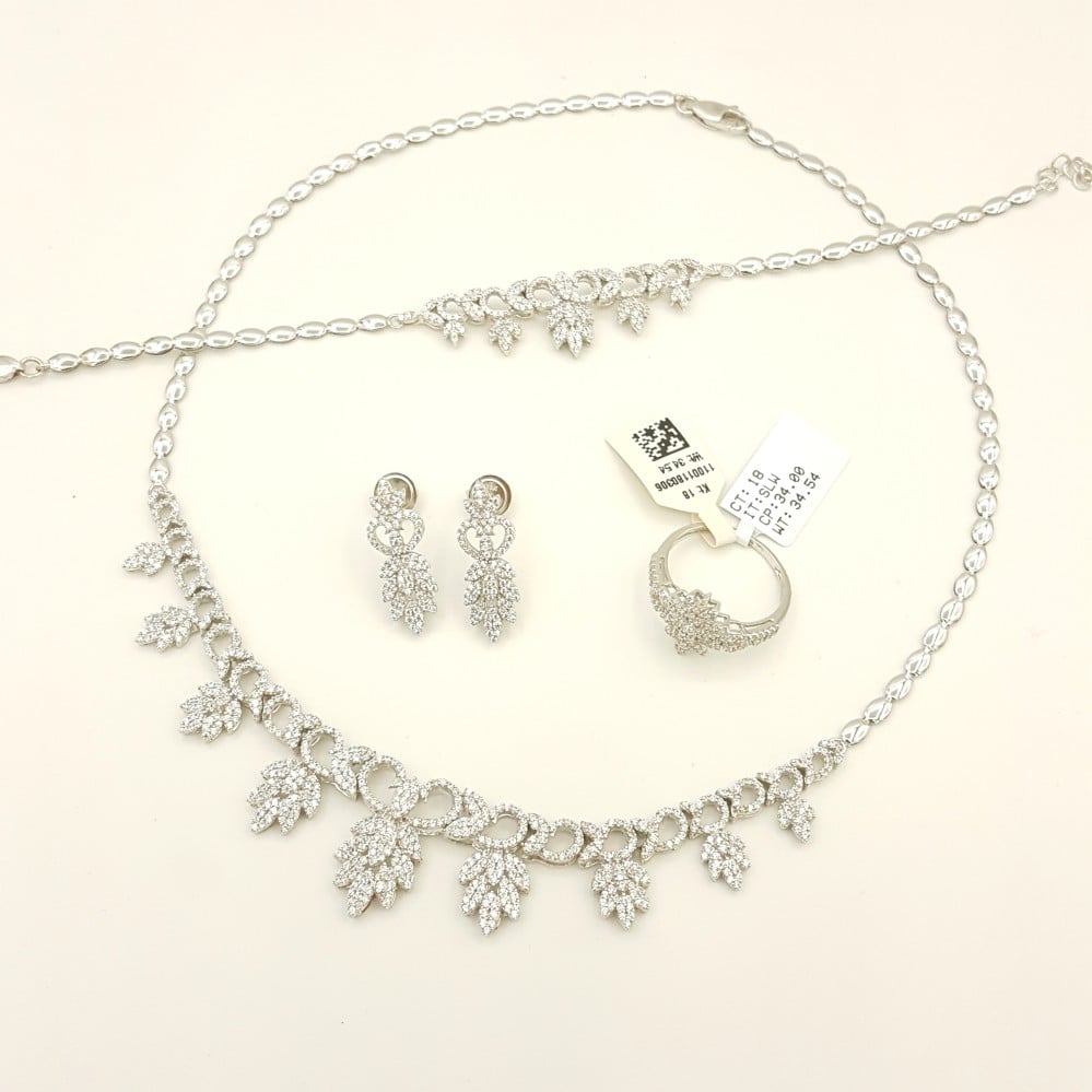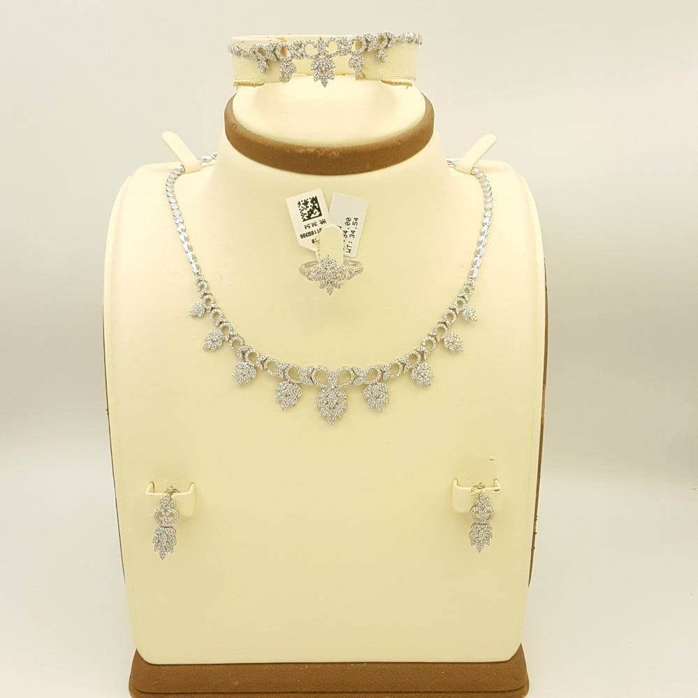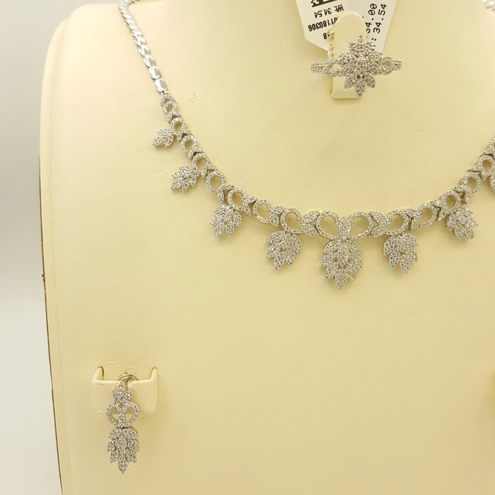 لا تفوت الفرصة لتكون جزءًا من عالم الأناقة مع ذهب أبيض عيار 18. اجعل كل لحظة خاصة مع طقم الشبكة الماسي المذهل. اطلبه الآن واستمتع بالفخامة!