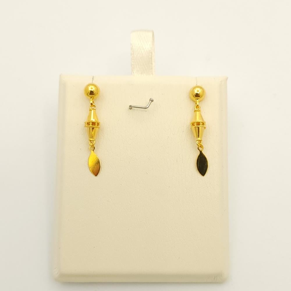 - تفاصيل دقيقة: يتضمن الحلق كُرة ذهبية في الأعلى، مع تفاصيل تصميمية فريدة في الجزء السفلي، مما يخلق تباينًا جذابًا بين الأشكال.