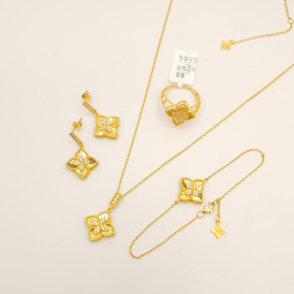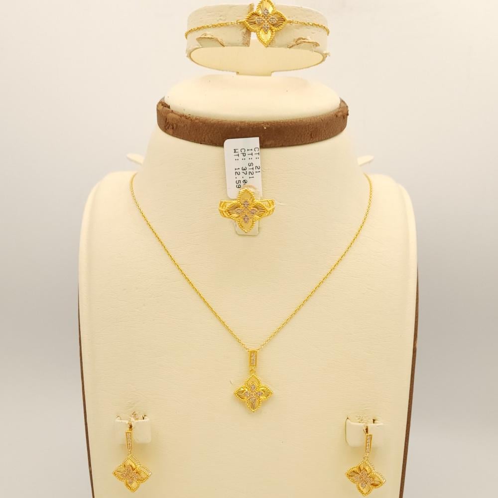 لا تفوتي الفرصة لتكوني محط الأنظار مع طقم ذهب عيار 21 بتصميمه الفريد. تسوقي الآن وكوني من بين الأوائل الذين يمتلكون هذه القطعة المميزة!