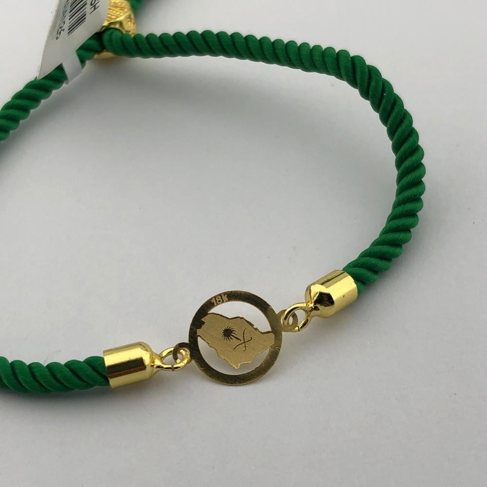 اسوزه مع الخيط الاخضر تصميم مميز من الذهب الأصفر عيار 18 قيراط تتميز بجاذبية ملفتة. مثالية للارتداء اليومي. يمكنك تنسيقها مع المجوهرات من الذهبتملكينها.