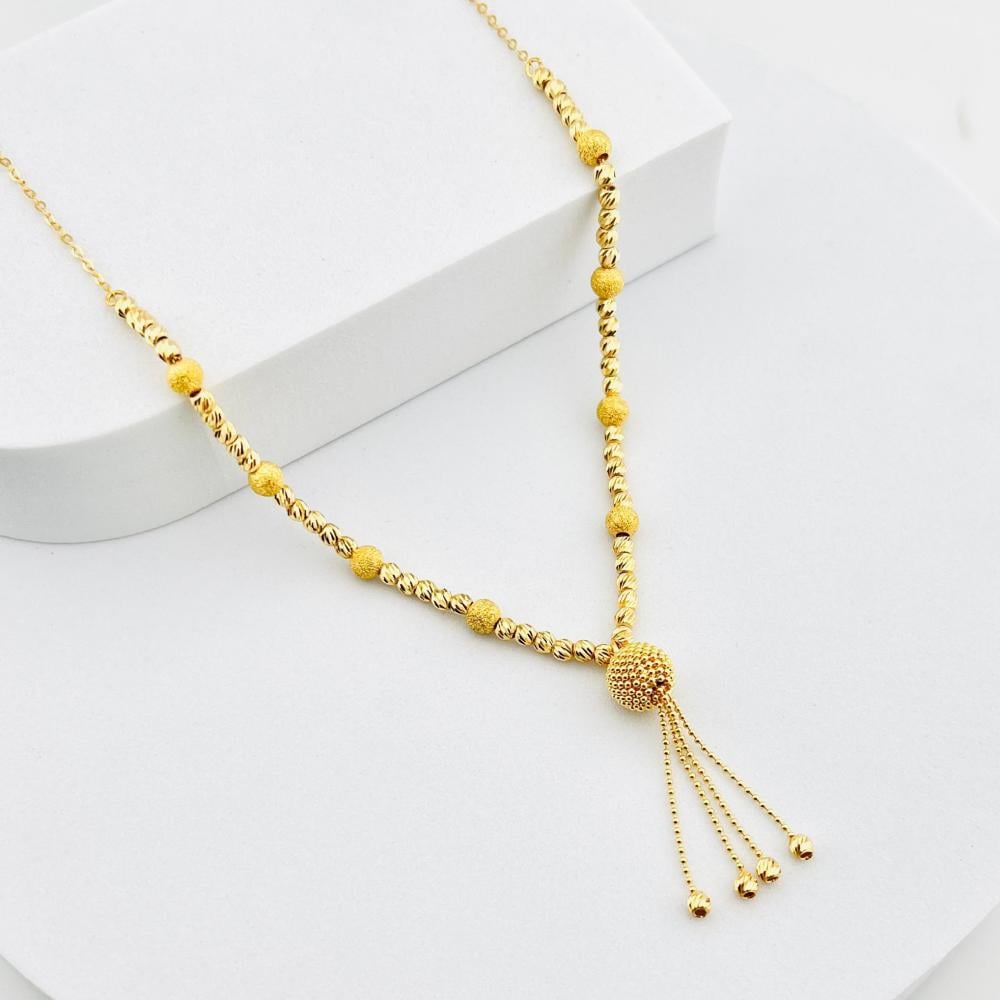 • ألوان مبهرة: تتألق القلادة بلون الذهب اللامع الذي يضفي لمسة من الفخامة على أي إطلالة.