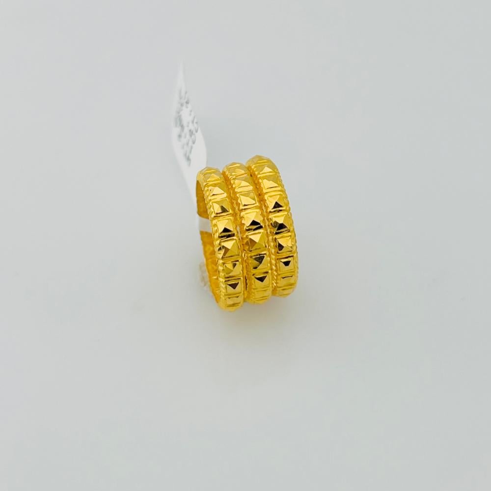 تتميز المرامي بتفاصيل دقيقة، حيث يظهر اللمعان الذهبي بشكل واضح، مما يعكس الضوء بطريقة ساحرة. التصميم يضم أنماطاً هندسية متكررة تضيف لمسة عصرية، مما يجعلها تبرز بين المجوهرات الأخرى. هذه الأنماط لا تضيف فقط جمالاً، بل تعكس أيضاً جودة الصنع.