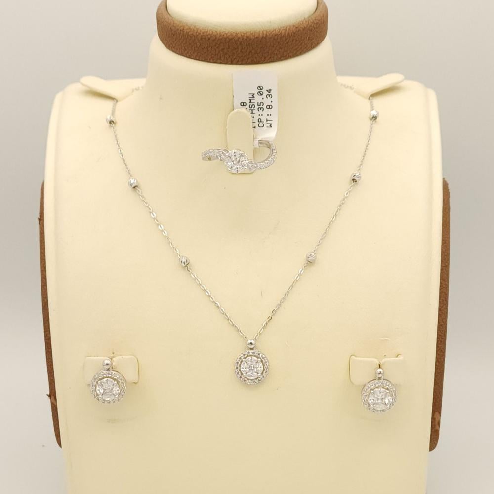 لا تفوت فرصة اقتناء طقم ذهب أبيض عيار 18 الذي يجمع بين الفخامة والجودة. اجعل كل لحظة مميزة مع هذا الطقم الرائع. تسوق الآن وكن جزءًا من عالم الأناقة!
