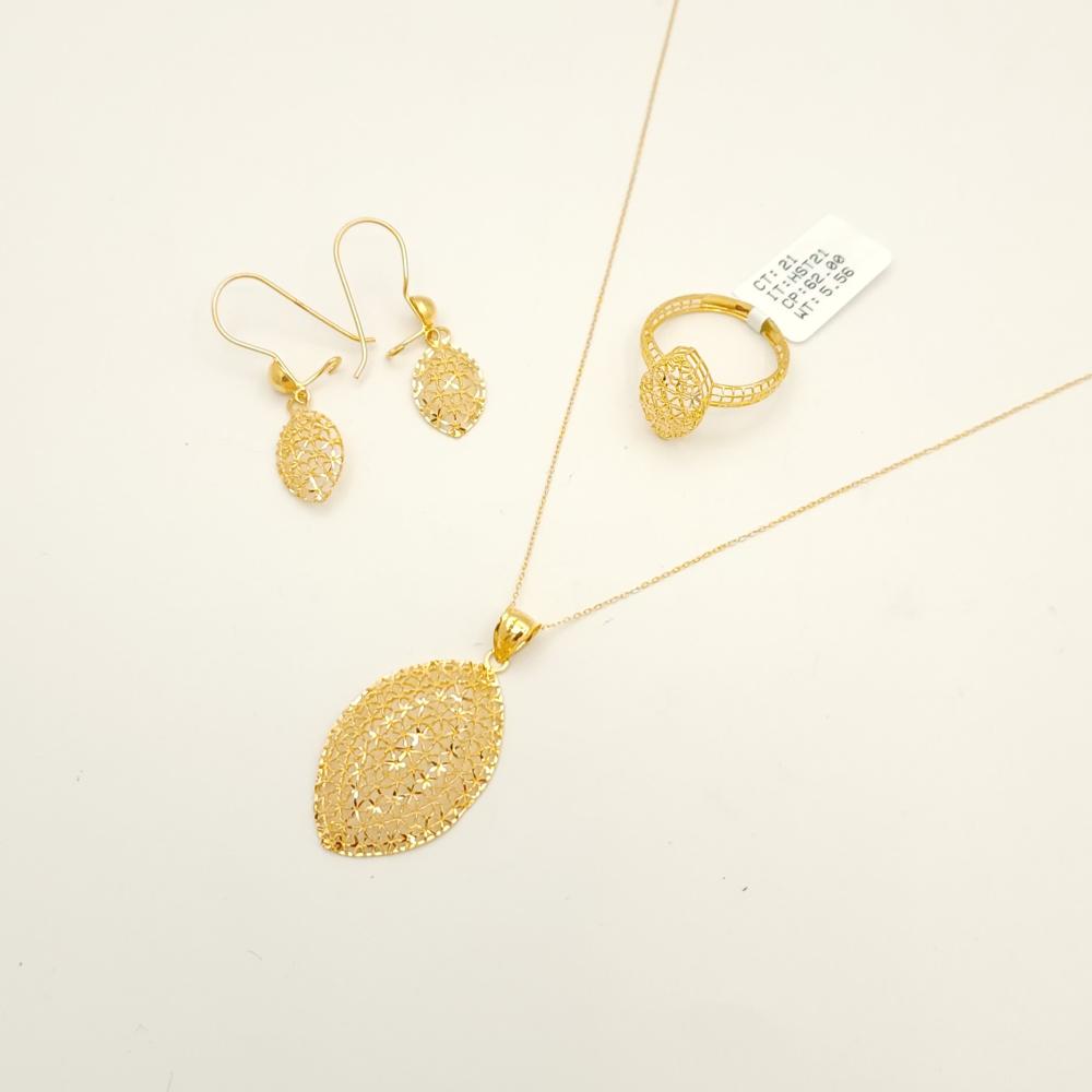 - جودة عالية: مصنوع من ذهب عيار 21، مما يضمن لك متانة وديمومة الطقم.