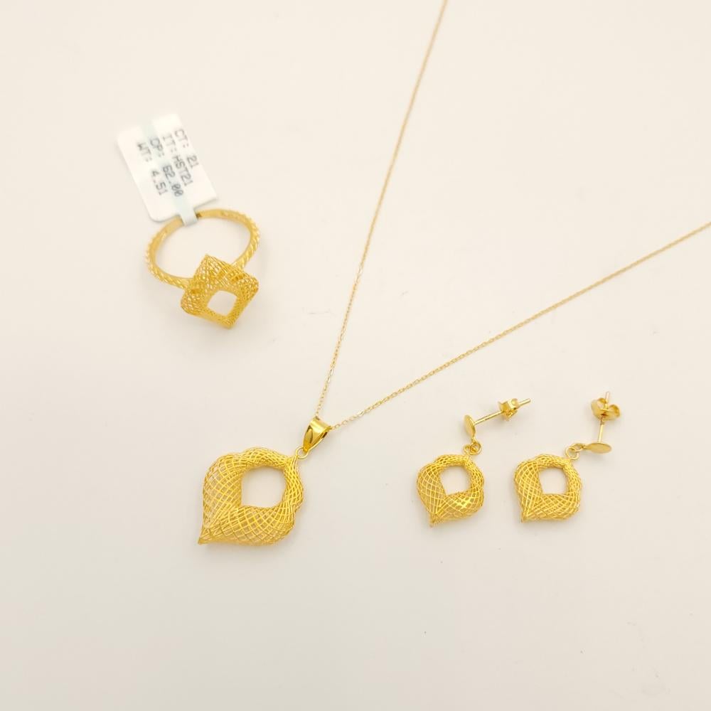 - تصميم أنيق: يتمتع الطقم بتفاصيل دقيقة وأشكال هندسية جذابة، مما يضيف لمسة من الفخامة إلى إطلالتك.