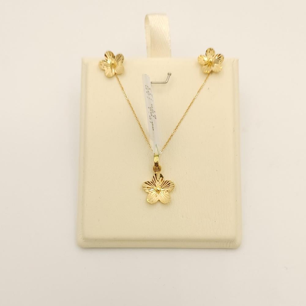 اكتشف أناقة ذهب عيار 18 مع تعليقة وحلق (فرع المارينا) وزن 2.32 جرام، حيث يجمع بين الفخامة والجمال الطبيعي. هذا التصميم الزهري الأنيق يضفي لمسة مميزة على إطلالتك، مما يجعله الخيار المثالي لكل مناسبة.