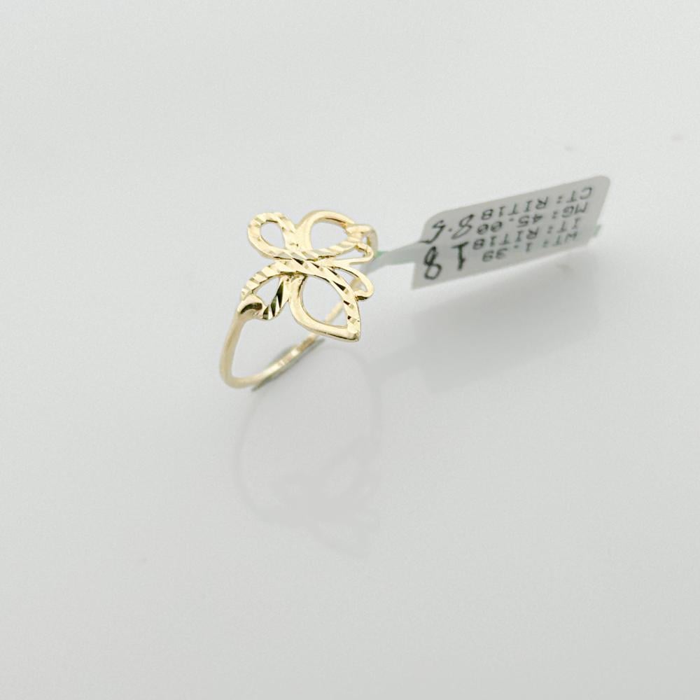 استمتع بجمال وأناقة خاتم ذهب عيار 18 بوزن 1.39 جرام. يتميز هذا الخاتم بتصميم زهري أنيق يجعله خيارًا مثاليًا لإضافة لمسة من الفخامة إلى إطلالتك. مصنوع من الذهب عيار 18، يتمتع الخاتم بلون ذهبي دافئ وبراق، مما يجعله يبرز بشكل رائع على أي يد.