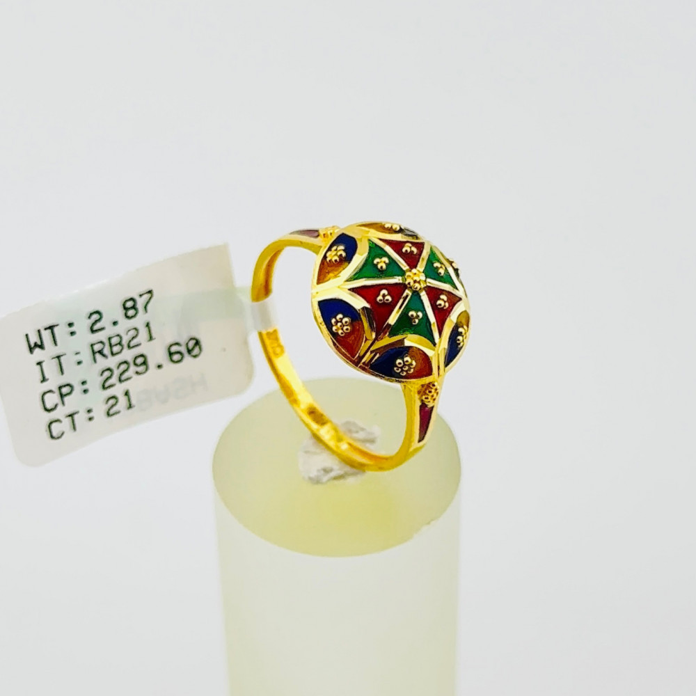 This 21k yellow gold Indian ring has a striking appeal. Perfect for everyday wear. You can coordinate it with your own gold jewelry.