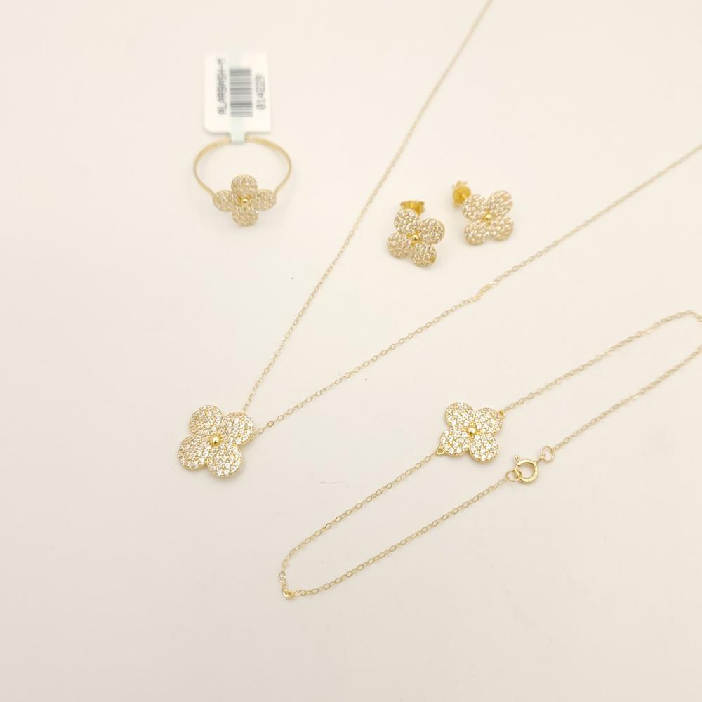 - تصميم راقٍ: يتميز الطقم بتصميمه الأنيق الذي يجمع بين الأشكال الزهرية الناعمة والتفاصيل الدقيقة، مما يضفي لمسة من الفخامة على أي إطلالة.