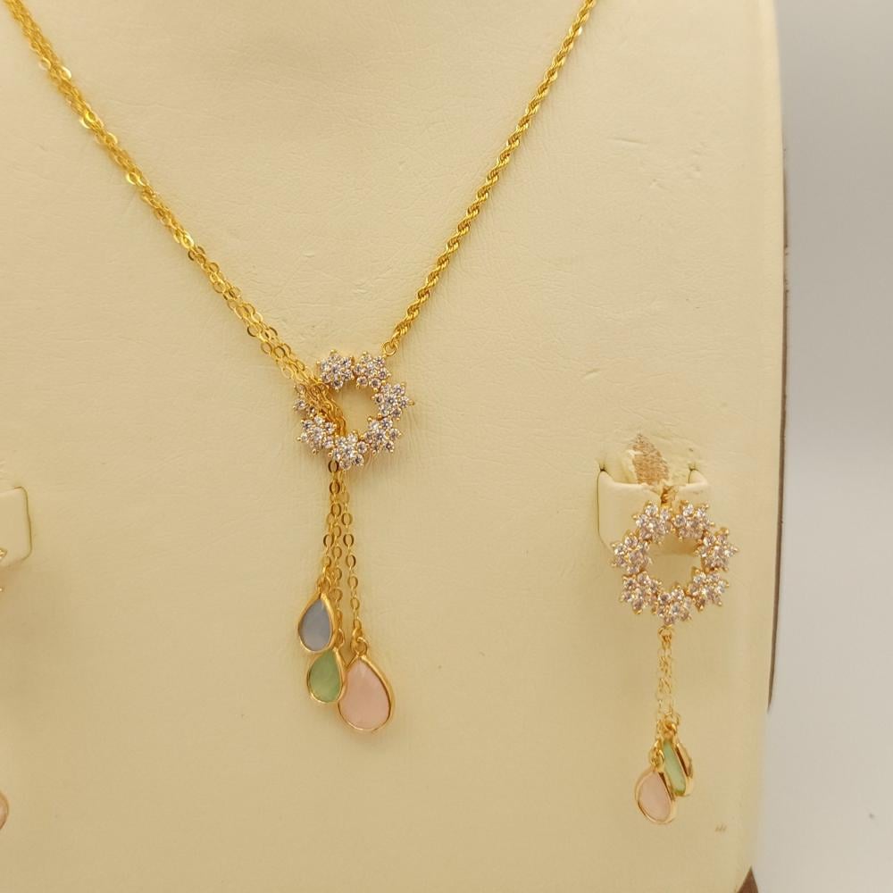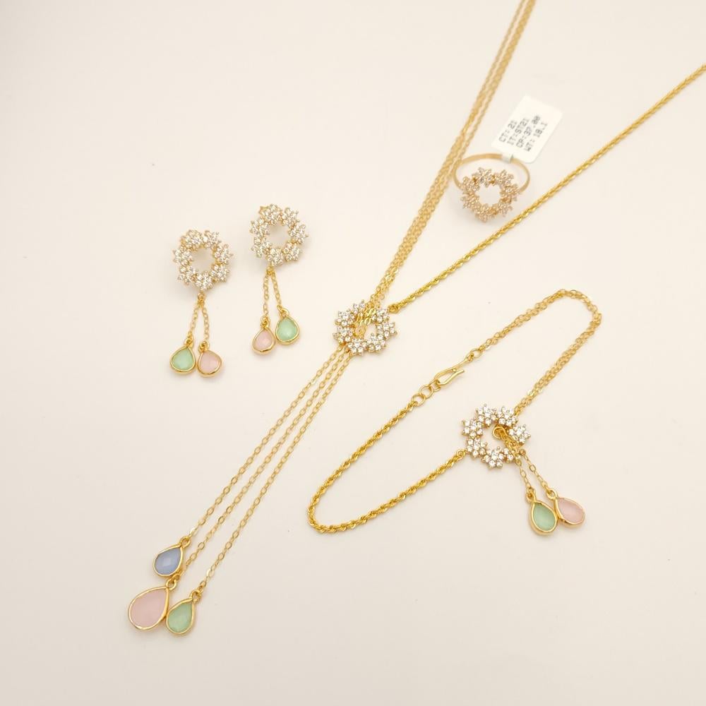 - تصميم فريد: يتميز الطقم بتفاصيل دقيقة، حيث يضم قلادة أنيقة مع زهور متألقة، وأقراط تتدلى برقة، مما يضيف لمسة من الرقي إلى أي زي.