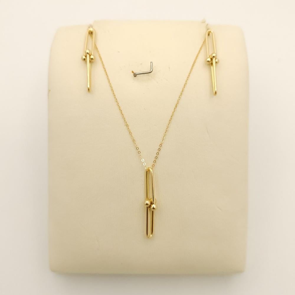 استمتع بأناقة لا مثيل لها مع طقم ذهب عيار 18، الوزن 1.97 جرام. يتميز هذا الطقم بتصميم عصري يجمع بين البساطة والجمال، مما يجعله خيارًا مثاليًا لكل امرأة تبحث عن لمسة من الفخامة في إطلالتها اليومية.