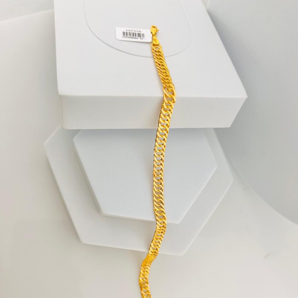 This necklace features a lustrous gold hue that enhances its appeal, making it an indispensable piece of jewelry. Crafted from 21K yellow gold, it guarantees high quality and a luxurious look. Its smooth design with interlocking links gives you a sense of comfort and elegance at the same time.