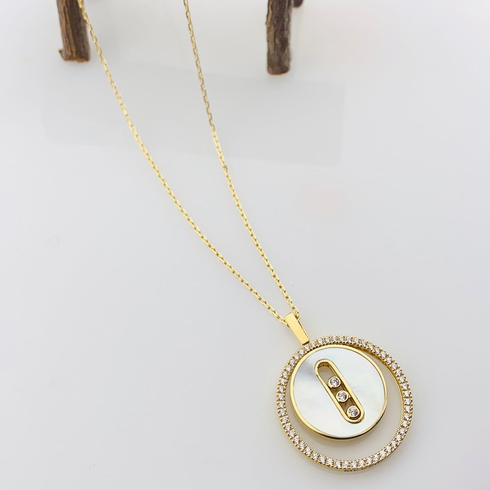 A distinctive design pendant in 18k yellow gold that has a striking appeal. Perfect for everyday wear. You can coordinate it with your own gold jewelry.